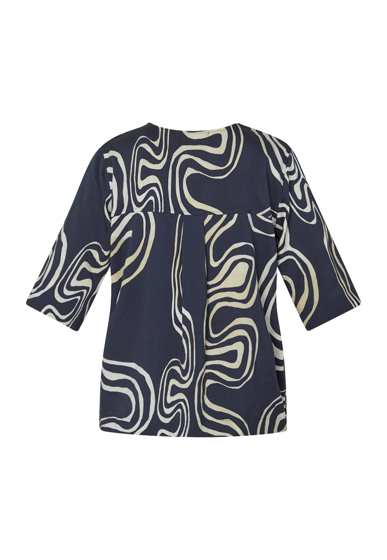 Denne bluse fra Elton har et markant og kunstnerisk udtryk, hvor det organiske print tilfører designet dybde og visuel elegance. Den bløde viskosekvalitet med let stræk sikrer en behagelig pasform, mens den formede silhuet fremhæver figuren på en feminin og raffineret måde. En stilfuld bluse, der balancerer karakter og komfort.