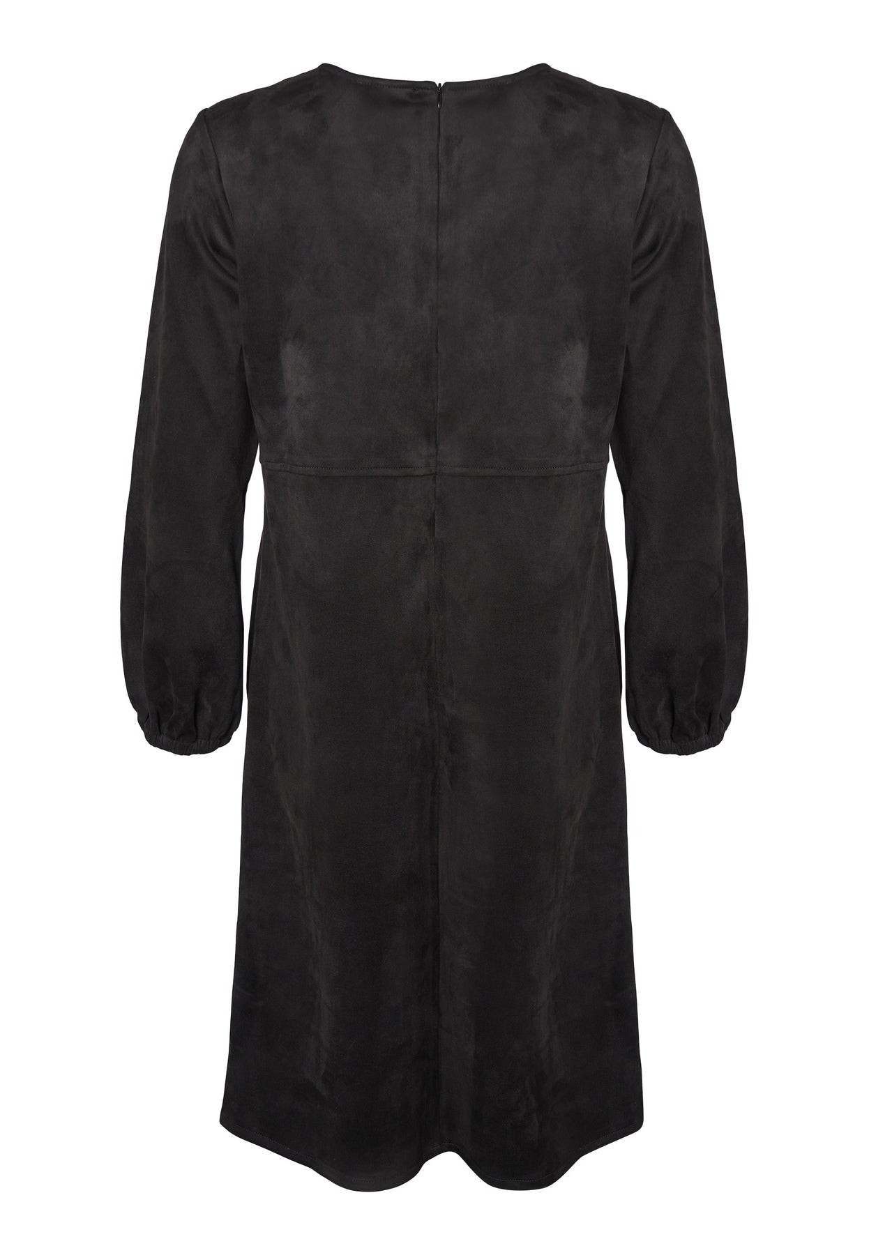 En stilren og komfortabel kjole med A-formet silhuet og enkel elegance. Kjolen har rund hals, lange ærmer og en løs pasform, der falder flot om kroppen. Det rene design og ensfarvede look gør den til et alsidigt valg, som både kan dresses op og ned alt efter lejligheden.