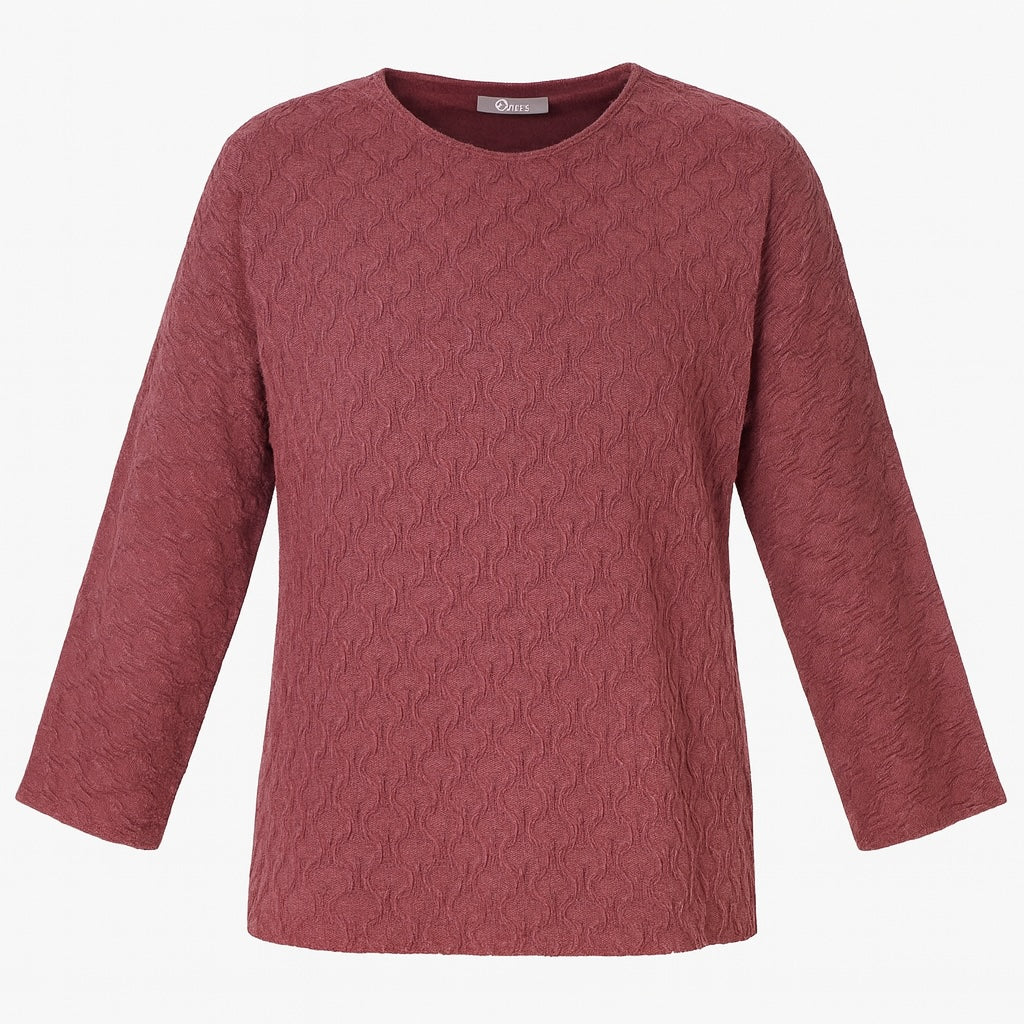 En blød og enkel bluse med rund hals og lange ærmer – et oplagt valg til en afslappet og komfortabel hverdagsstil. Det diskrete strukturmønster tilføjer et let spil til den klassiske silhuet, mens den strækbare kvalitet sikrer god bevægelighed.