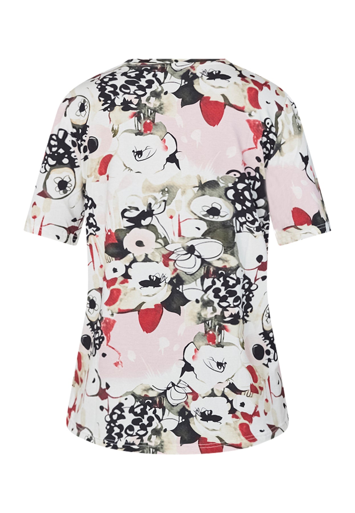 Denne T-shirt fra Elton kombinerer et kunstnerisk og detaljerigt print med et enkelt og feminint snit. Det levende mønster skaber et eksklusivt udtryk og giver designet dybde, mens den bløde viskosekvalitet med stræk sikrer en behagelig pasform og flot bevægelse. En elegant hverdagsstyle med et markant visuelt udtryk.