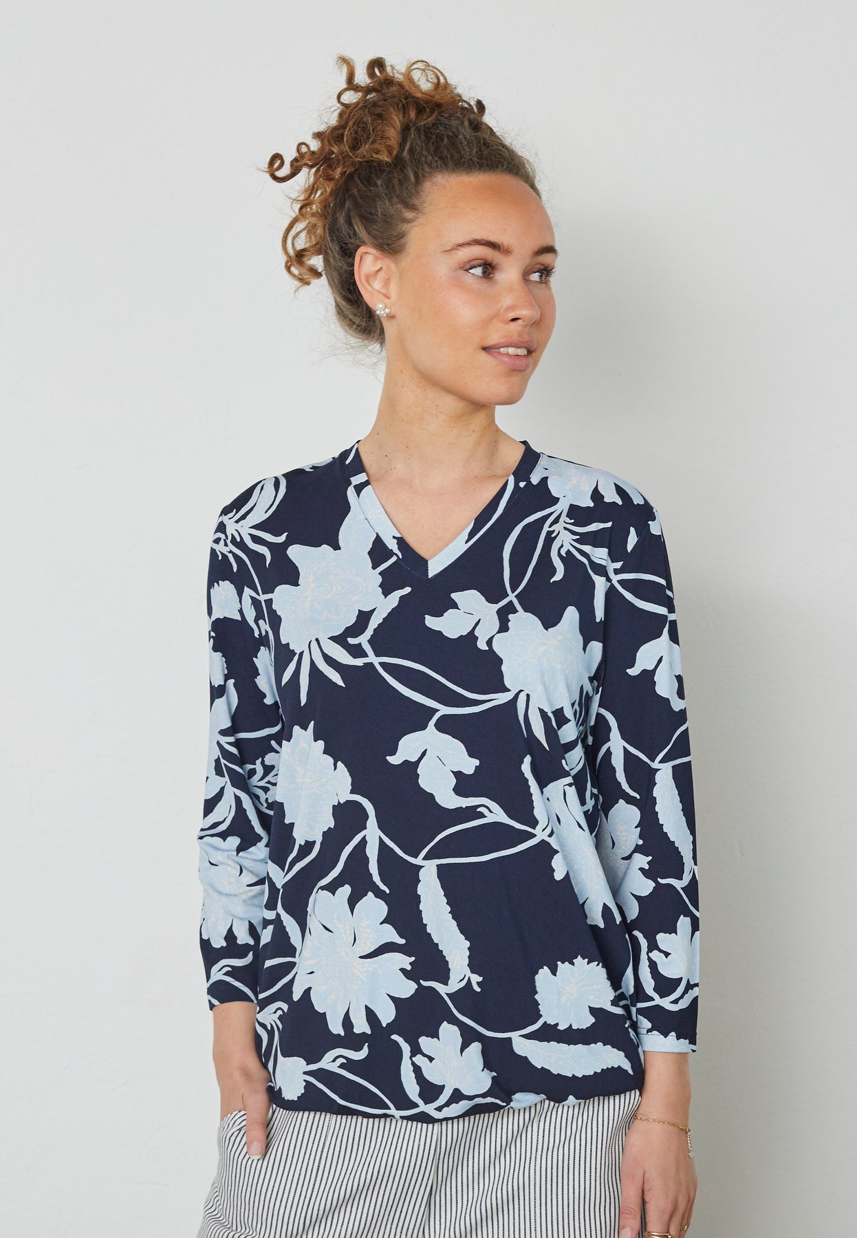 Denne T-shirt fra Elton har et elegant og kunstnerisk udtryk med et detaljeret all-over print. Det grafiske mønster giver designet et eksklusivt præg, mens den bløde viskosekvalitet med let stræk sikrer høj komfort og en smuk pasform. En stilfuld og feminin style, der tilfører personlighed til hverdagsgarderoben.
