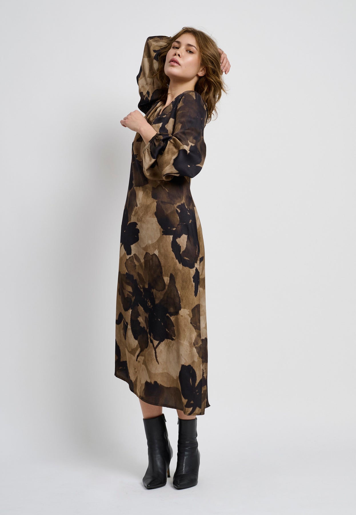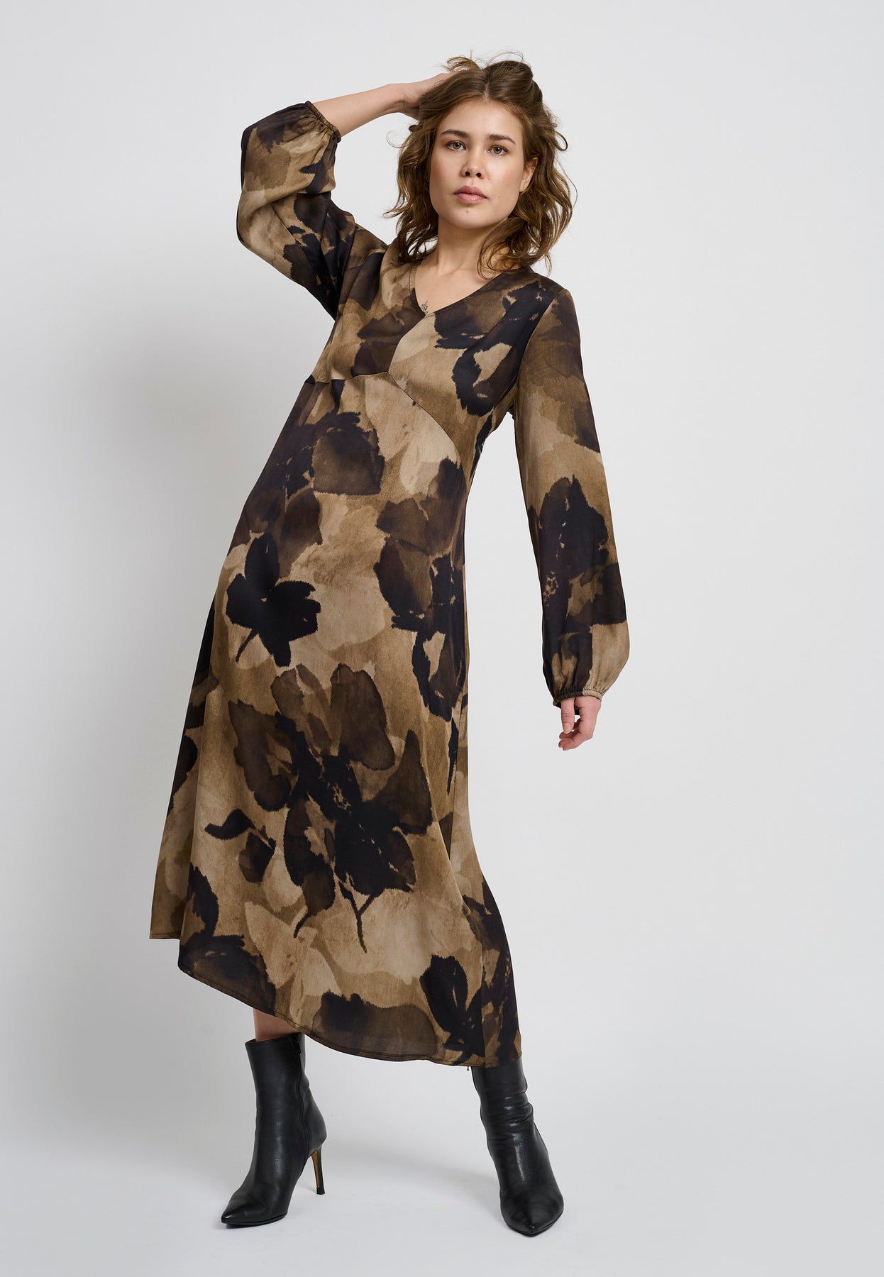 Her får du en kjole fra Elton, hvor mønster og længde spiller smukt sammen og skaber et dramatisk, men samtidig elegant udtryk. Den lette viscose falder naturligt langs kroppen og giver et luftigt flow, der understreger kjolens sofistikerede design. Med sit iøjnefaldende print er det en style, der skiller sig ud – uden at miste sin tidløse charme.